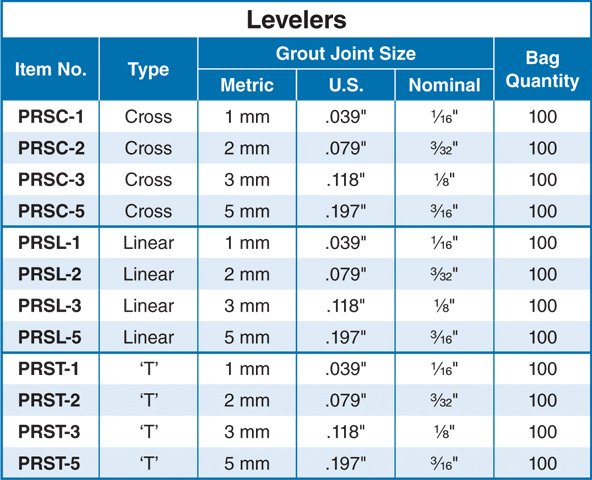 Home / Tile Installation Tools / Proleveling System Levelers – Linear Style – 1mm (100 count) Proleveling System Levelers – Linear Style – 1mm (100 count)$27.50 Out of stock SKU: AFS-GT-PRSL-1 Category: Tile Installation Tools Tag: Gundlach Tools Product ID: 1508 Related products Tile Spacers 1/16″ 250 per bag $3.00 Add to Cart 1/8″ Blue Horseshoe Tile Spacers (100/bag) $11.00 Add to Cart Proleveling System Blue Tensioning Cap (50 count) $64.75 Add to Cart Rubber Mat for Mosaic Tile (58-RM) $73.00 Add to Cart
